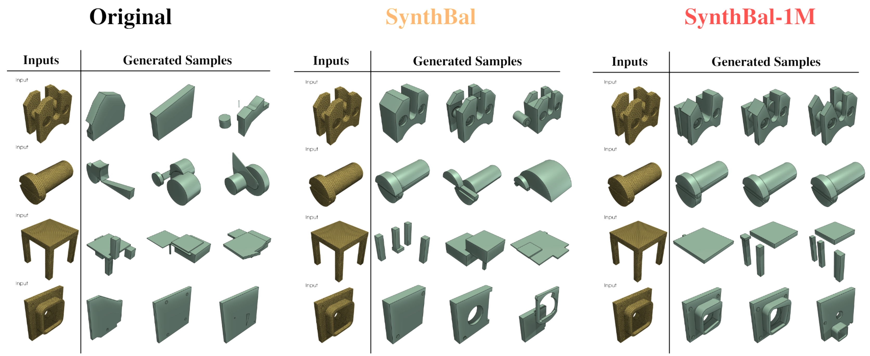 Our experiments show that SynthBal significantly boosts reconstruction accuracy, reduces the generation of invalid CAD models, and markedly improves performance on high-complexity geometries, surpassing existing benchmarks. These advancements hold substantial implications for streamlining reverse engineering and enhancing automation in engineering design.